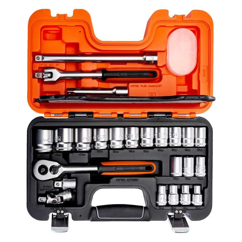 - 18 pcs 1/2″ 6 pans : 10, 11, 12, 13, 14, 15, 16, 17, 18, 19, 20, 21, 22, 23, 24, 27, 30, 32 mm