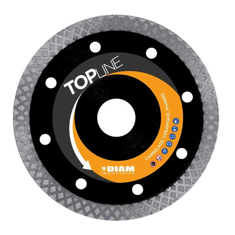 Le disque diamant FC90 DIAM Industries est le plus haut de gamme de la marque pour la découpe de carrelage, céramique, faïence et grès cérame. En effet, avec une épaisseur de 1,4 mm et un centre acier renforcé par 3 épaisseurs de tôle, ce disque diamanté est extrêmement robuste et efficace.