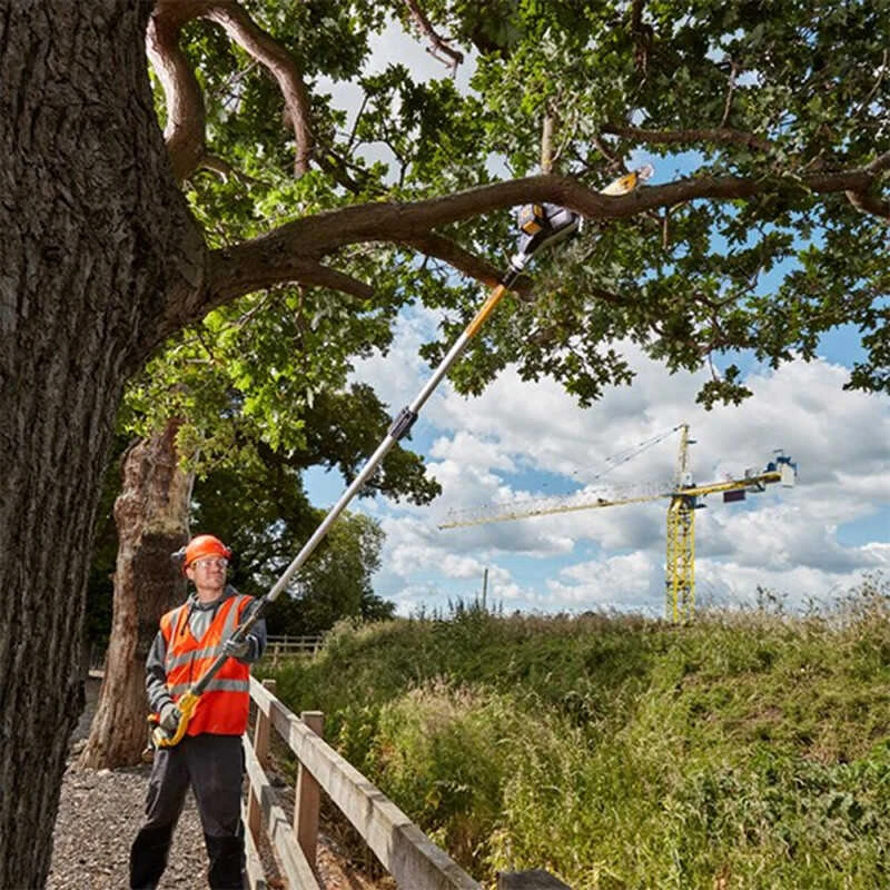 Par ailleurs, la nouvelle élagueuse sur perche Dewalt atteint jusqu’à 4.5 m de portée, avec une tête inclinée qui permet à l’utilisateur un bon contrôle, particulièrement pour les tâches difficiles comme l’élagage ou l’abattage.