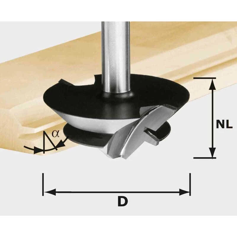 Cette fraise à abouter les onglets permet de coller corps de meuble et tiroirs, de façon sûre et sans décalage latéral.