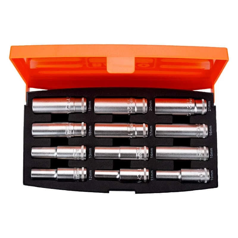 - Douilles longues 6 pans 1/2 » métrique, 10, 11, 12, 13, 14, 15, 16, 17, 18, 19, 20 et 21 mm