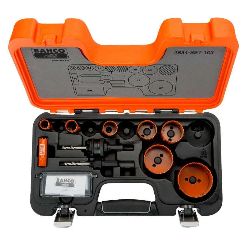 Ce coffret de scie cloche/trépans Bahco se compose d’accessoire aux dimensions courantes dans l’industrie mécanique, l’industrie de l’eau et de l’assainissement et l’industrie des installations électriques. Les scies trépans bimétal Sandflex® sont spécialement conçues pour couper le métal, mais elles peuvent également être utilisées pour la plupart des matériaux, comme le bois et le plastique