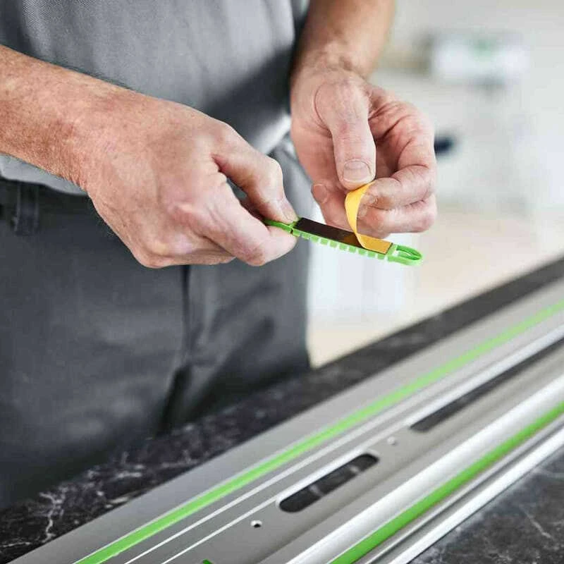 Inventé et perfectionné par Festool : le rail de guidage à patins adhésifs. Conçu pour une coupe rectiligne et précise, pour les travaux à l’horizontale sur le sol ou la surface de travail tout comme pour les applications murales. Les patins adhésifs permettent une fixation simple sur différentes surfaces.