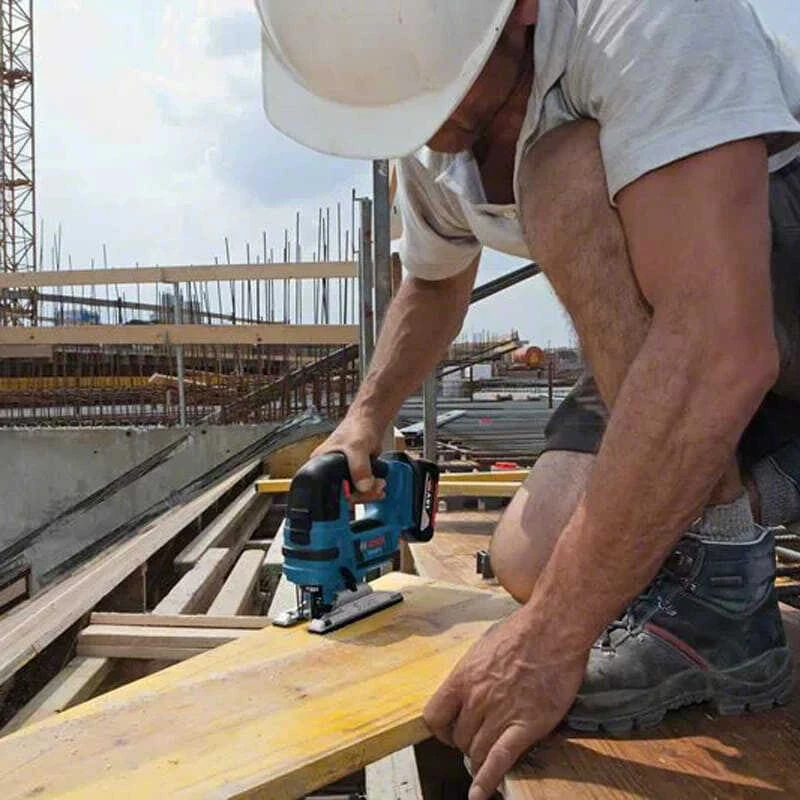 Cette scie sauteuse sans-fil est idéale pour les coupes courbes et transversales dans le bois massif, les panneaux agglomérés, les bois composites et les matériaux durs ou épais. Elle est compatible avec le système d’aspiration de poussières Click & Clean Bosch et d’autres aspirateurs Bosch ainsi qu’avec toutes les batteries et tous les chargeurs 18 V de Bosch Professional (Professional 18V System) ainsi qu’avec les rails de guidage Bosch moyennant l’utilisation d’un adaptateur.