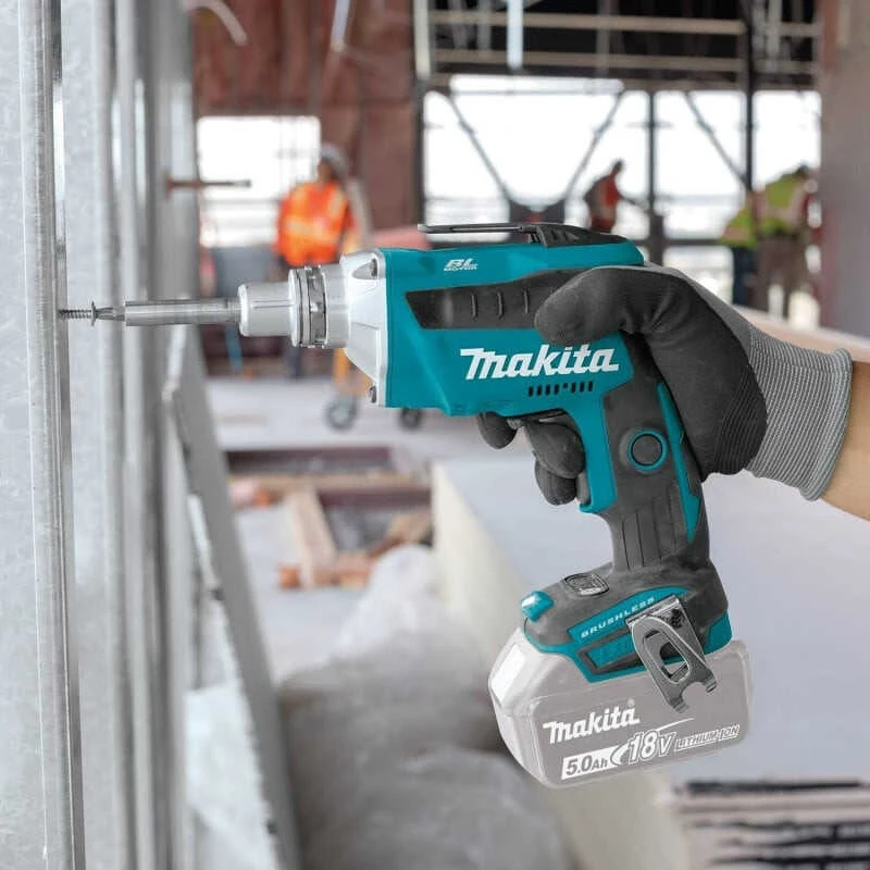 La visseuse à plaques de plâtre Makita DFS452Z est idéale pour les usages intensifs grâce à son moteur sans charbon. La technologie « Pousse visse » permet d’obtenir un haut rendement et de hautes performances avec la machine.